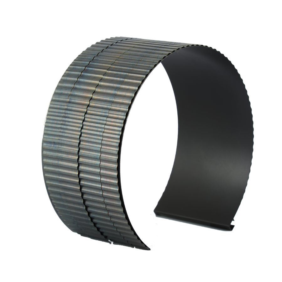 轴承由单层光滑的顶层平箔片和波纹结构的弹性波箔片等组成。顶层平箔片提供轴承工作的内表面,安装在波箔片上面,波箔片沿轴承座内表面安装,为顶层平箔片提供弹性支承并控制着轴承的表面支承刚度,波箔片和平箔片一端被固定在轴承壳体上,另一端沿轴承壳体内壁面自由伸展。顶层平箔片与转子间采用耐高温的涂层技术,能够有效降低转子与轴承间启停和碰磨时的摩擦磨损。